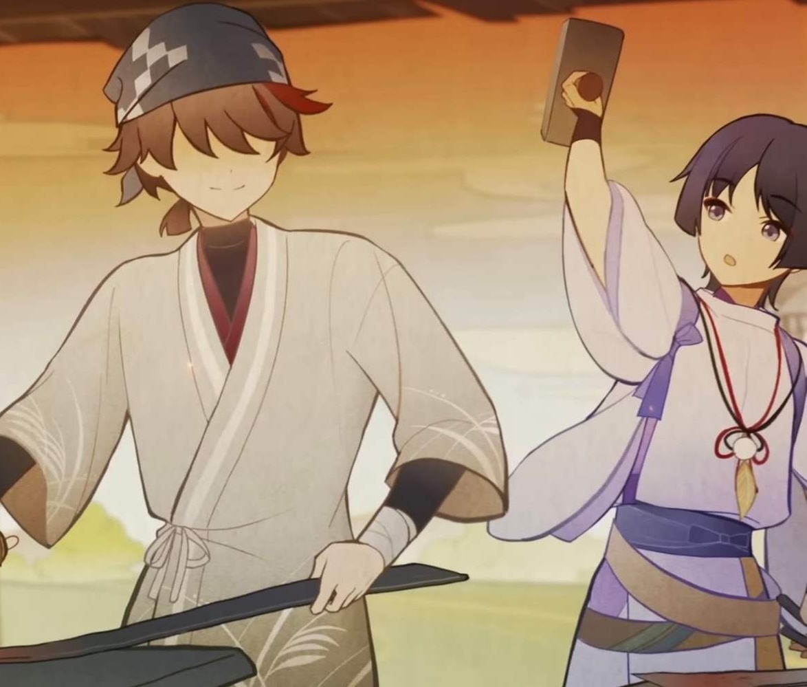 Eventually, he was discovered and freed by a kindly human man named Katsuragi Niwa, who was part of a group of bladesmiths that worked in Tatarasuna under the Inspector, Mikoshi Nagamasa. The puppet stayed in Tatarasuna at this time with the group and was known as the wandering eccentric, as he had no known name. At some point. Katsuragi finds out the puppet’s gold ornament as proof of identity, ¨ that the puppet was affiliated with the Raiden Shogun. So to keep Scara safe, Katsuragi took him away from Tatarasuna to Shakkei Pavilion, giving him a warning to not reveal his identity to others, and then leaving him in the domain so that he could never be found by Nagamasa and the others. For his best friend to leave him with a warning to not reveal his identity to others would weigh heavily on his heart. This is the first betrayal. He learns that by his very nature, he is different from humans. Even ones who he trusted wholeheartedly, who he loved and cared for, would see him as nothing more than a monster if they knew the truth. He can never be fully human himself.
